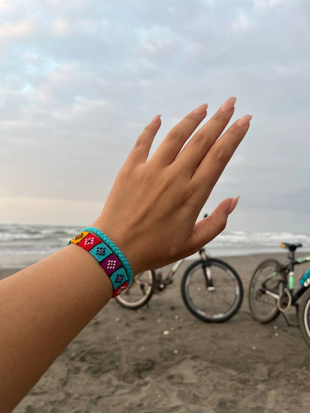 دستبند دو ردیفه ی گلیمی_ هنر دست زنان عشایر خراسان_ طرح گنبد مینا
